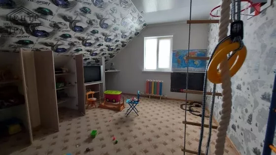 В доме свежий ремонт- все помещения с качественной отделкой,установлены стеклопакеты, натяжные потолки,на полу линолеум, в детской и игровой комнатах пол застелен ковролином. Все содержится в идеальном порядке.