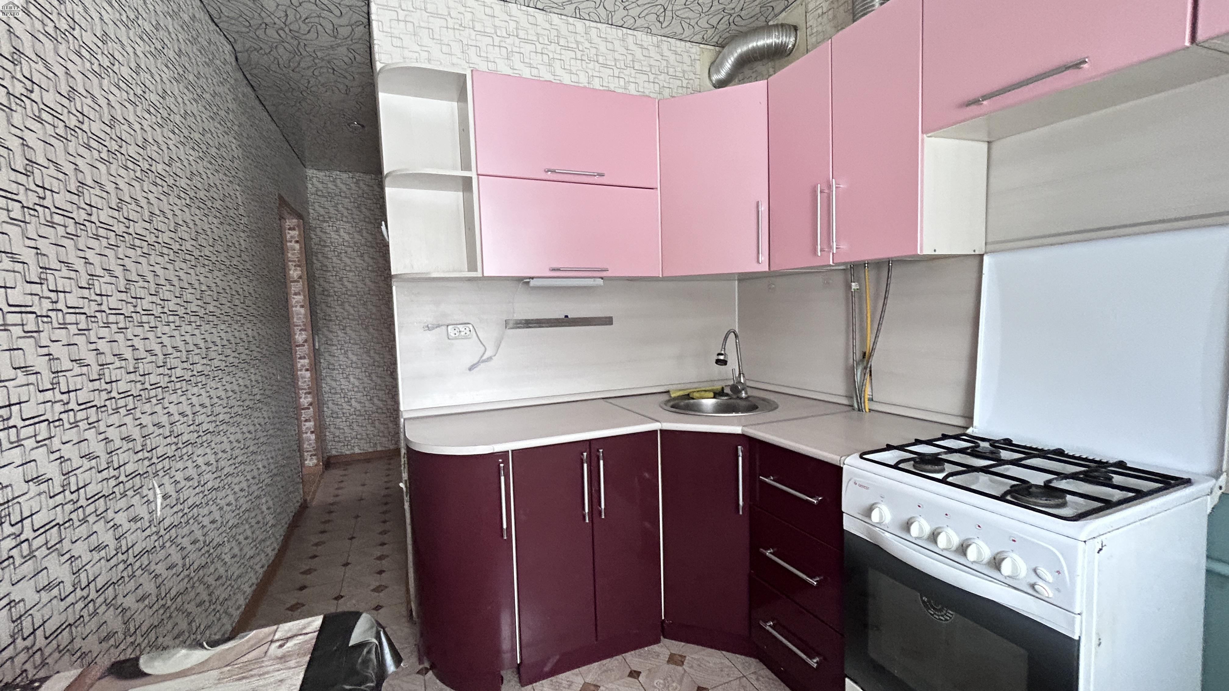 Кухня оснащена кухонным гарнитуром- остается покупателям.